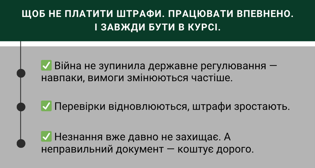 Щоб не платити штрафи. Працювати впевнено. І завжди бути в курсі.